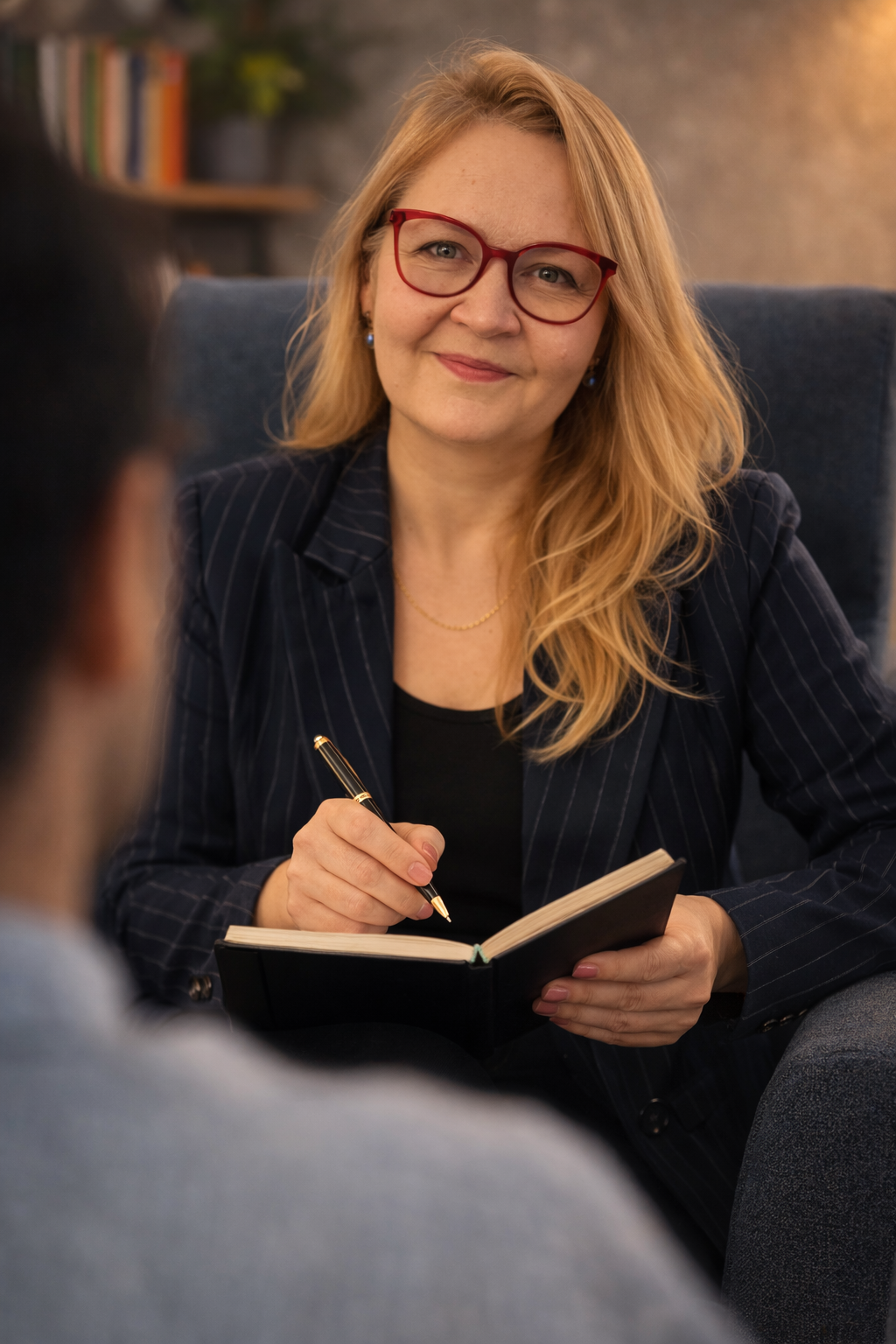 Otázkami směřuji nikoli k utápění se v sebelítosti a "babrání se" v problému, ale se vší empatií se s klientem zaměřuji na to pro-růstové, hledání řešení, nadĕji, důvodů k vděčnosti.